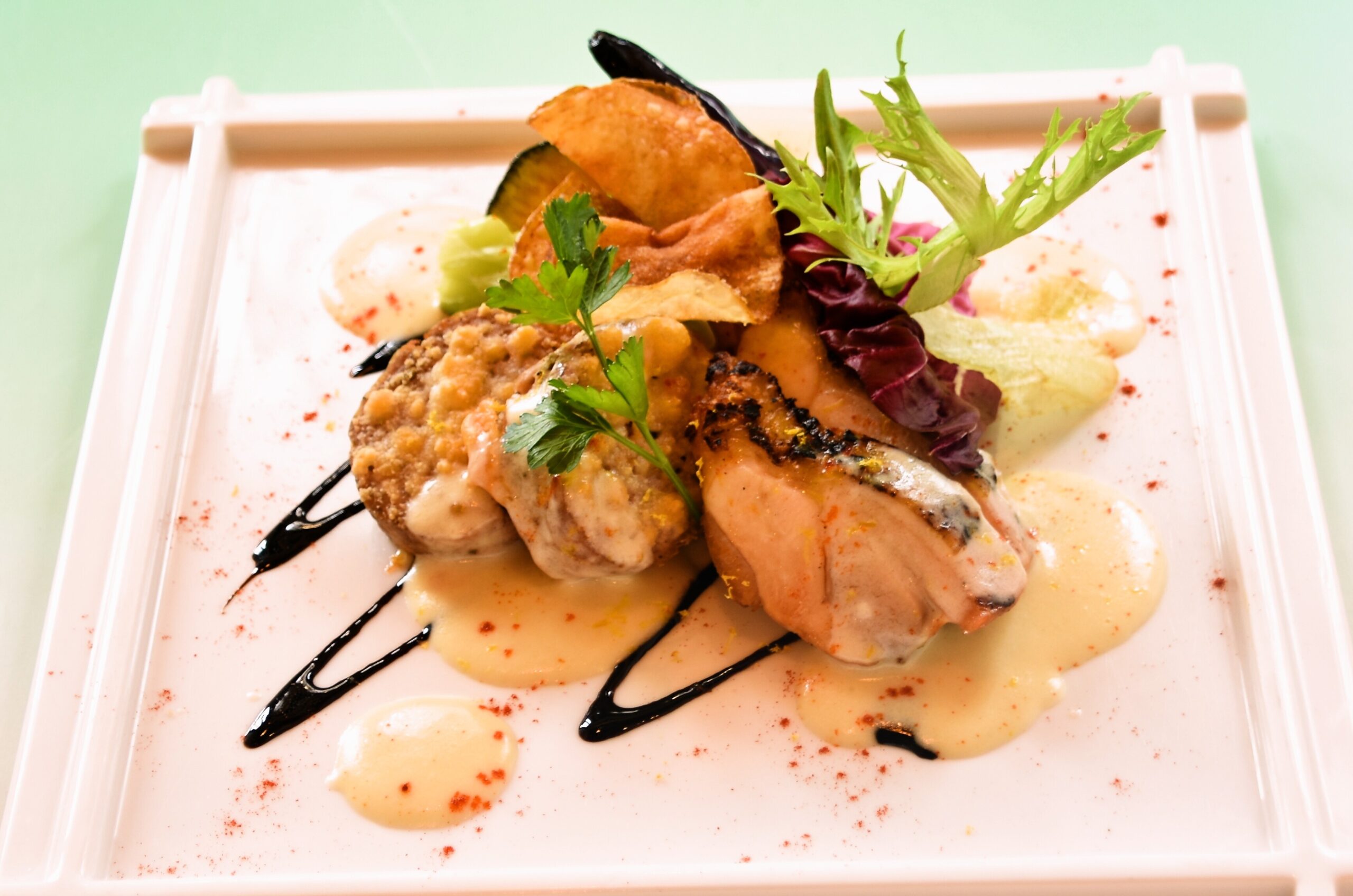 青海苔を加えた白ワインクリームソースを
